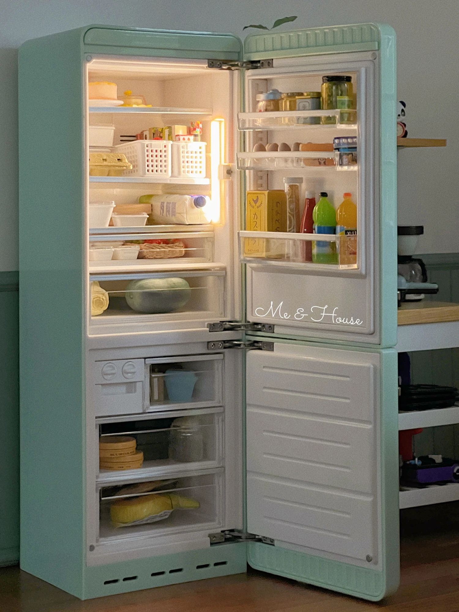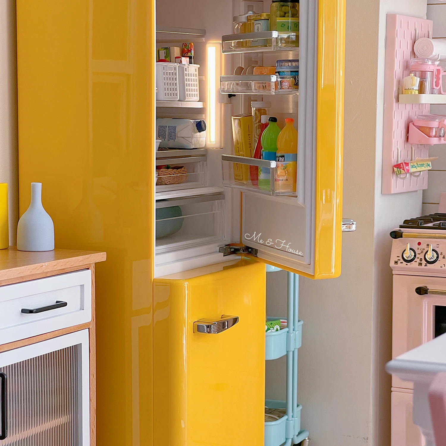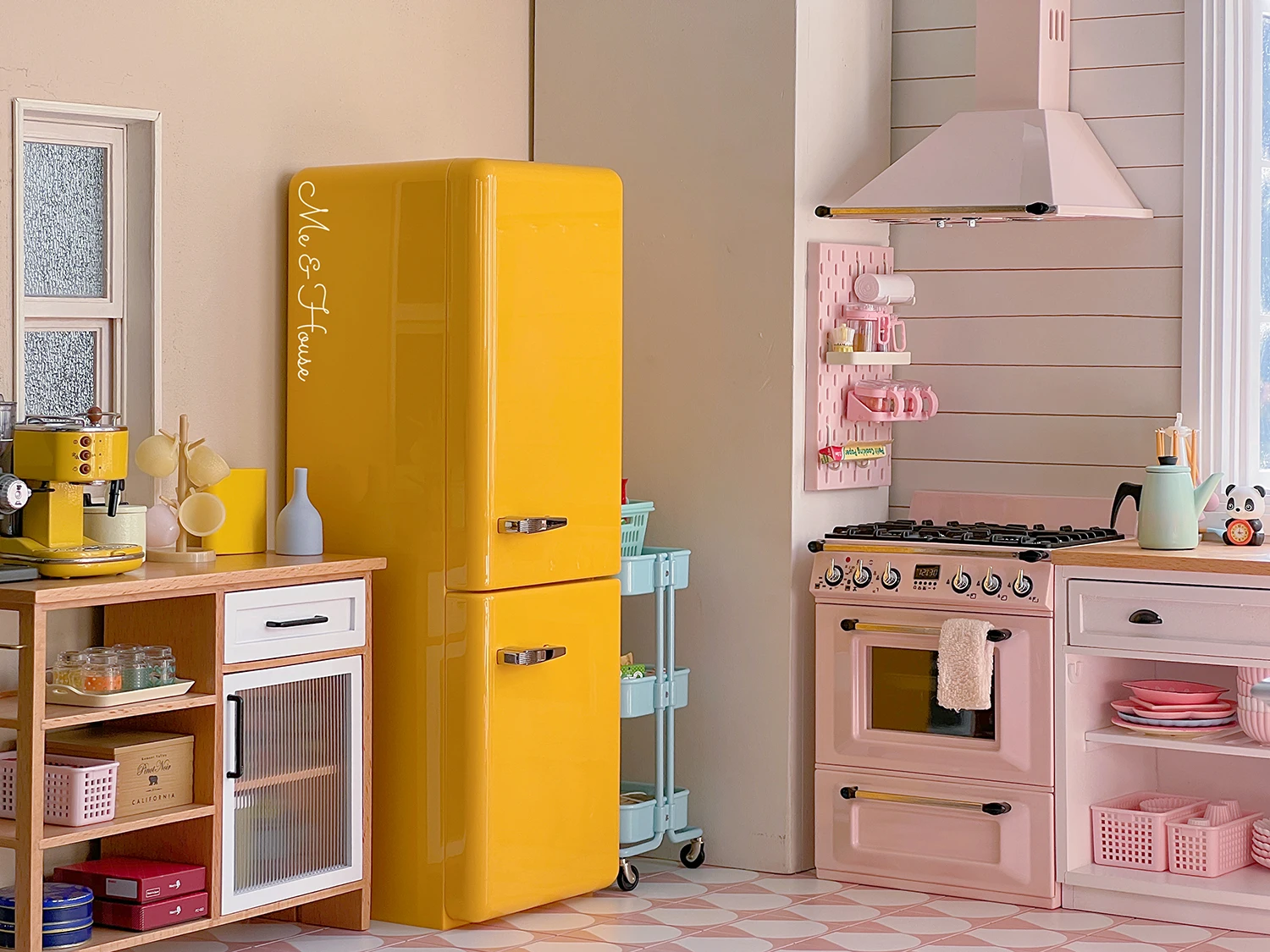 1/6 Doll House Model Furniture Accessories Metal Refrigerator With Light Kitchen Appliances Bjd Ob11 Gsc Blyth Lol Miniatures